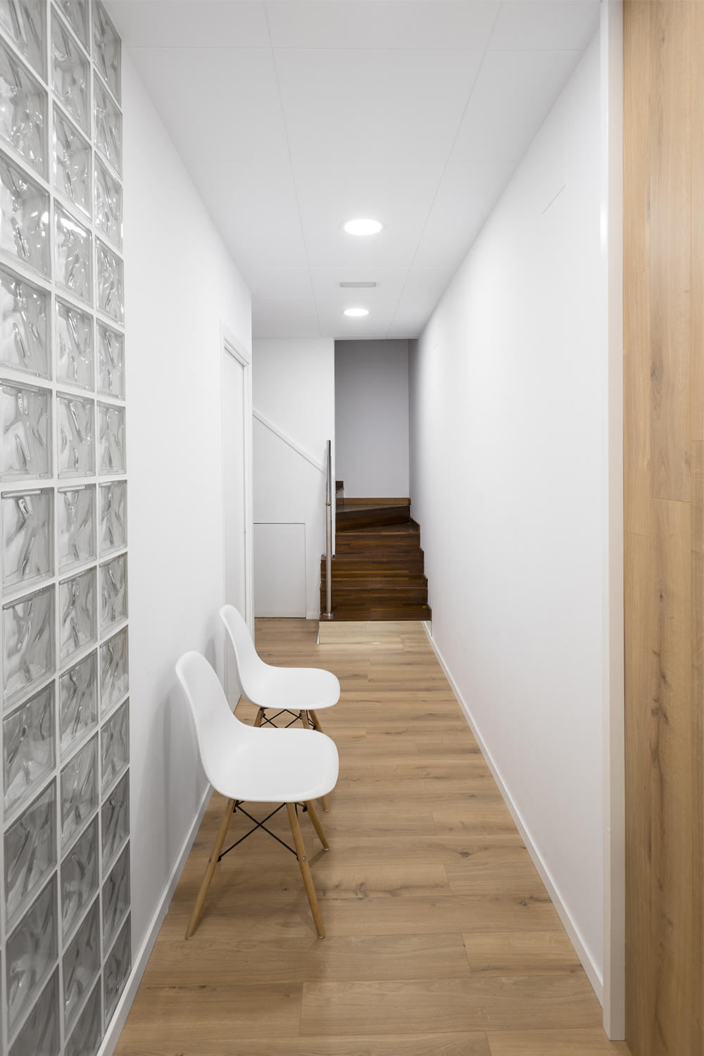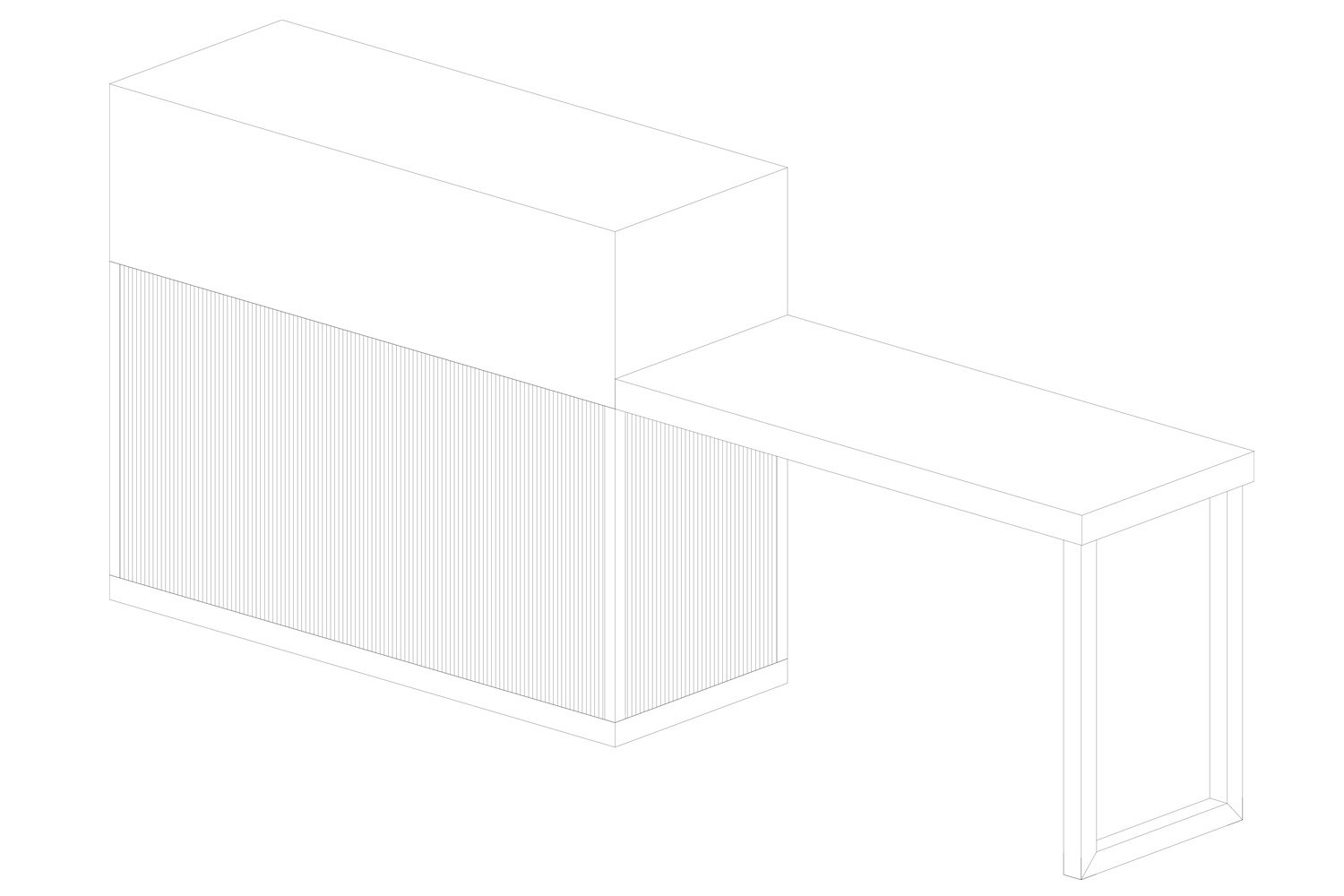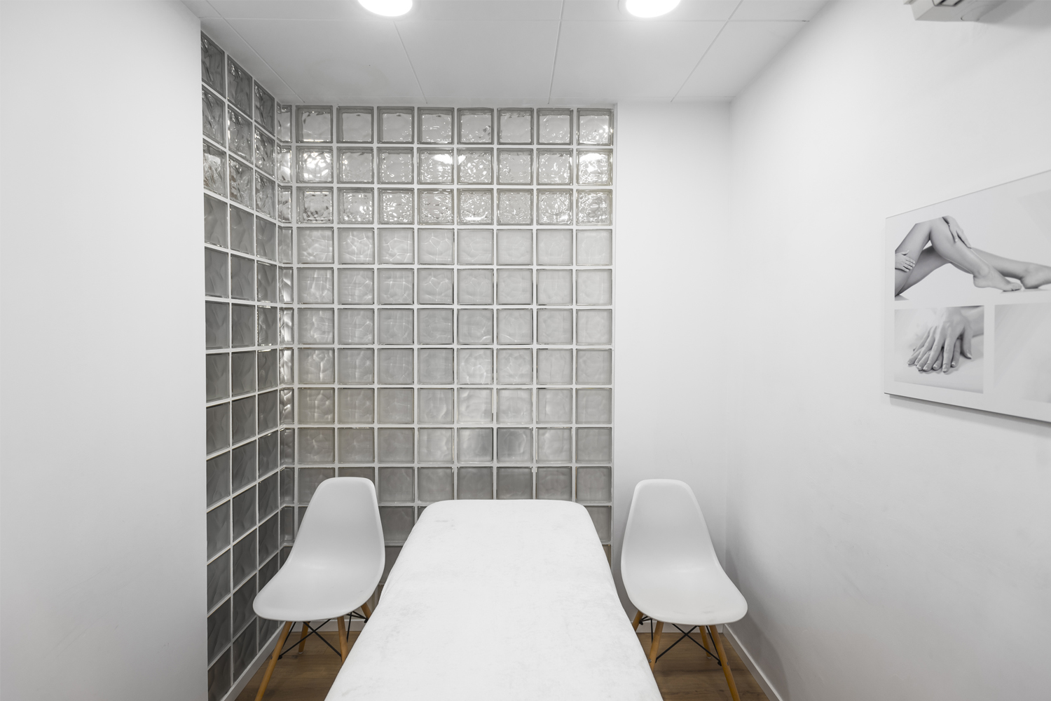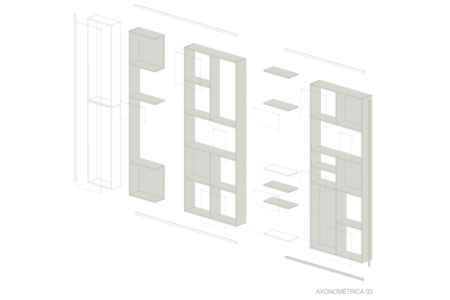 El taulell és l’element central, un punt de confluència, espai de benvinguda, d’atenció i de venta. El segon element potencial del projecte és la prestatgeria com a expositor, 100% visible des de l’exterior, creant un ritme de nínxols aleatori i de diferents dimensions. La sala interior es manté com espai de tractaments corporals. L’element aparador s’ha previst com un element de suport amb la mínima essència, donant prioritat el producte exposat.