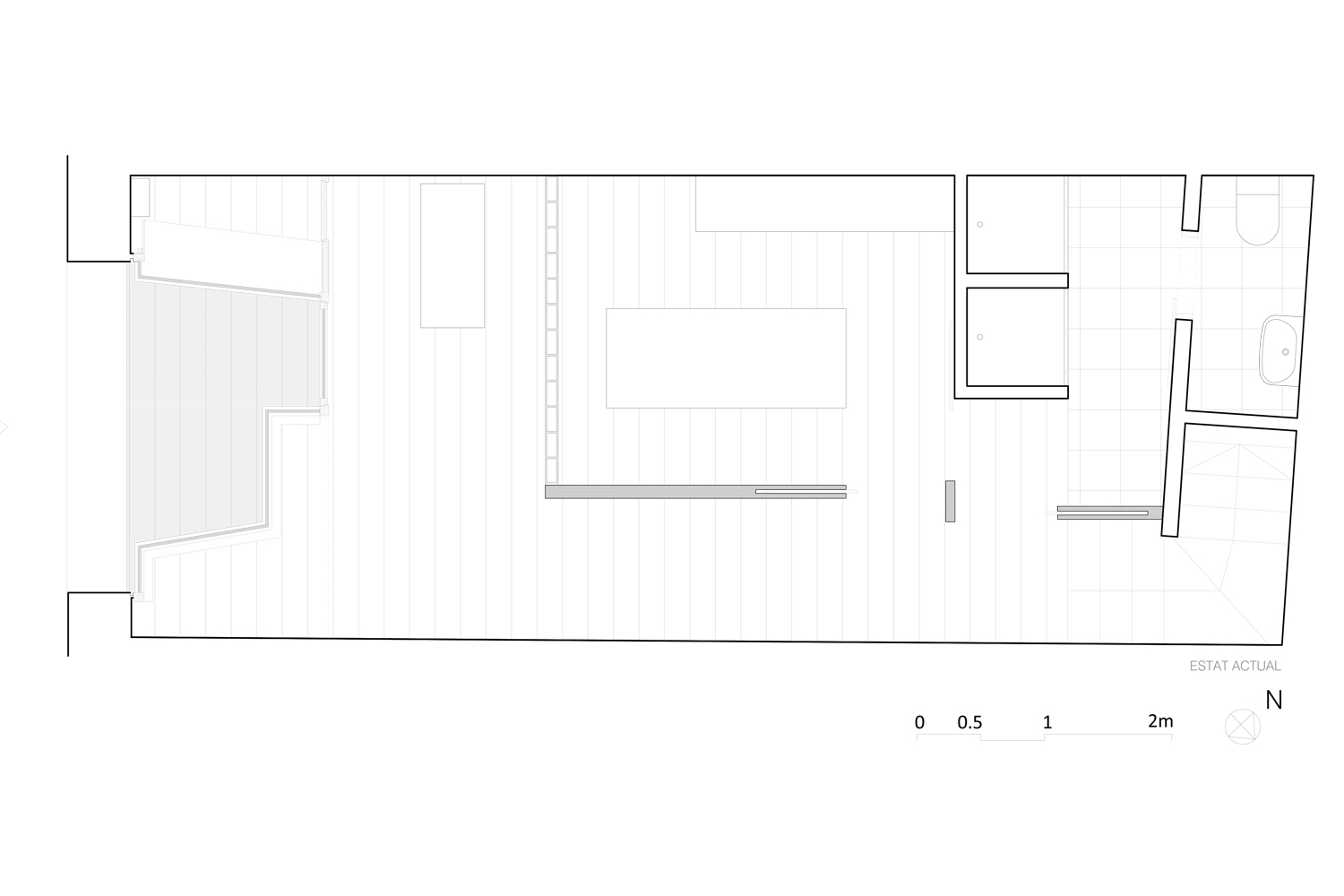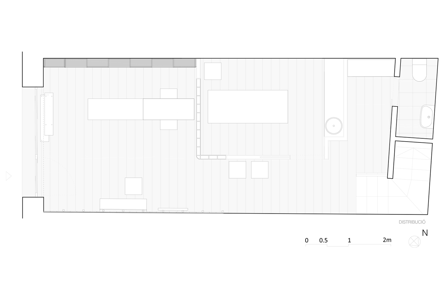 S’ha reformat per complet el nou espai eliminant l’aparador existent que limitava molts usos. La nova distribució aprofita superfície perduda, fins ara espai semi exterior. El projecte millora la visibilitat exterior i també l’entrada de llum. La nova distribució és oberta, sense marcar delimitacions entre els diferents espais.